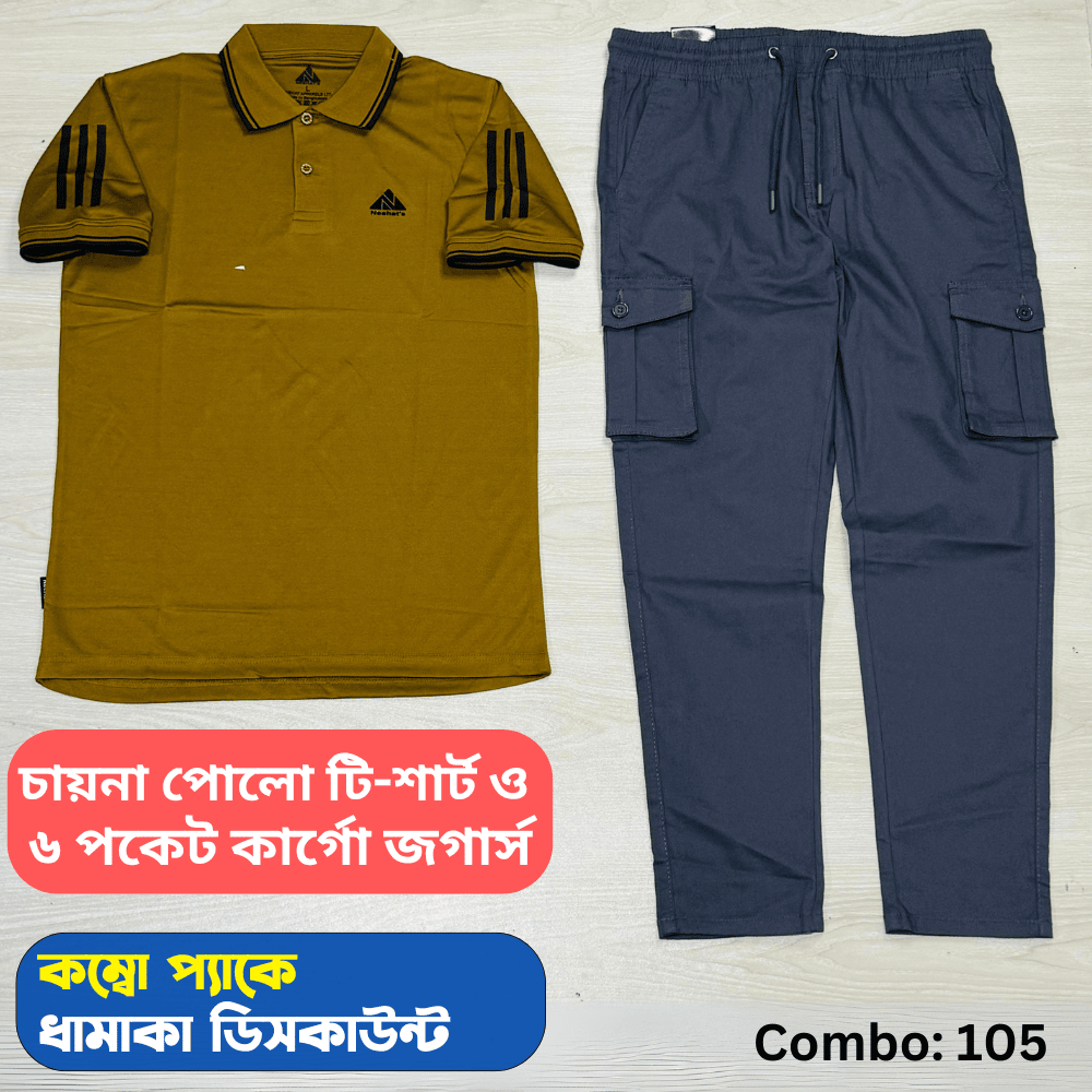 China Mesh Polo+6 Pocket Cargo Joggers – Combo 105